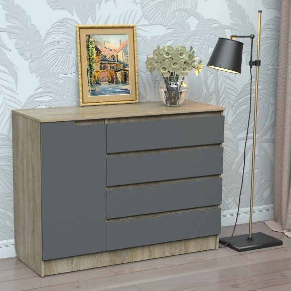 Цвет комода - 1. Аляска 2. Дуб шервуд 3. Дуб клондайк 4. Дуб Тахо 5. Дуб фрегат 6. Дуб молочный 7. Дуб сонома 8. Дуб сонома трюфель 9. Бук светлый 10. Ольха темная 11. Яблоня локарно 12. Орех лесной 13. Орех темный 14. Венге 15. Черный 16. Ваниль 17. Графит 18. Серый 19. Индастрил 20. Белый матовый 21. Светло - голубой 22. Оранж 23. Желтый 24. Красный