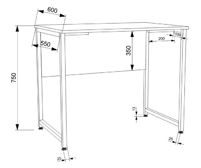 Опоры изделия — металлические 25х25х1,5 мм.