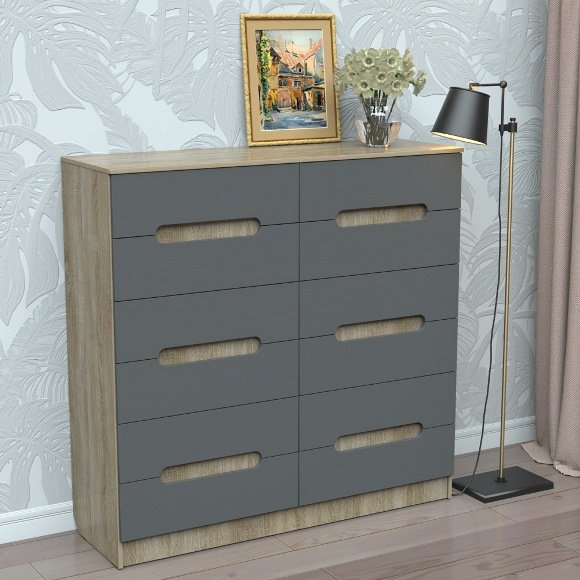 Цвет комода - 1. Аляска 2. Дуб шервуд 3. Дуб клондайк 4. Дуб Тахо 5. Дуб фрегат 6. Дуб молочный 7. Дуб сонома 8. Дуб сонома трюфель 9. Бук светлый 10. Ольха темная 11. Яблоня локарно 12. Орех лесной 13. Орех темный 14. Венге 15. Черный 16. Ваниль 17. Графит 18. Серый 19. Индастрил 20. Белый матовый 21. Голубой 22. Оранж 23. Желтый 24. Красный