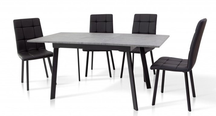 Стіл - Колір: Каркас і ніжки: Чорний; Стільниця: Мармур темний (сірий).Матеріал: Каркас і ніжки: Метал; Стільниця: МДФ у ПВХ плівці.Вкладка в стіл з механізмом "метелик". Товщина стільниці: 20 мм.Каркас і ніжки: порошкове фарбування