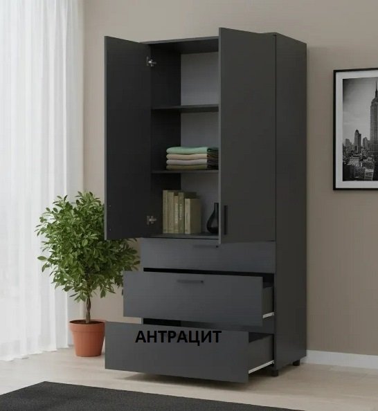 Шафа для одягу Торн 2Д/3Ш (полиці) 90*51,6*200